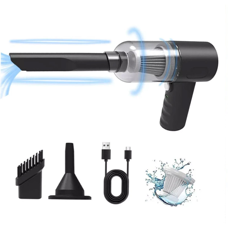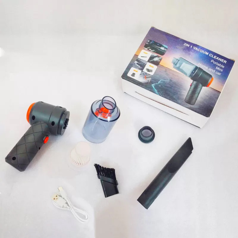 این جارو شارژی دو قابلیت مکش و دمش دارد و دارای دو سری مختلف می باشد. یکی از این سری ها برای تمیز کردن قسمت های سخت دسترسی مانند بین صندلی ها طراحی شده است و سری دیگر دارای فرچه برای تمیز کردن فرش و موکت است. برای شارژ کردن این دستگاه، می توانید از شارژر موبایل یا شارژر فندکی ماشین استفاده کنید. این جاروبرقی علاوه بر عملکرد جاروبرقی، قابلیت استفاده به عنوان دمنده هوا را نیز دارد. با قرار دادن نازل هوا در پشت جاروبرقی، می توان آن را به بادگیر و دمنده برای تمام نظافت و نیازهای روزانه تبدیل کرد و از ان برای کارهای مانند باد زدن زغال استفاده کرد. شایان ذکر است مدت زمان شارژدهی مفید ان بین 20-30 دقیقه است