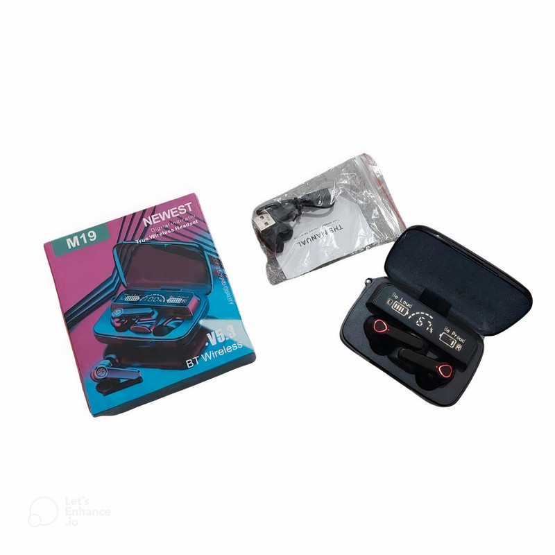 اگر به دنبال هدفون بیسیم جمعوجور هستید، M19 NEWEST V 5.3 یکی از گزینههایتان است. این مدل برخلاف ایرپاد بهصورت کامل در گوشتان قرار میگیرد. این محصول دارای محفظه با ابعاد استانداردی است و بهآسانی در جیب و کیفتان جای میگیرد. محفظه شارژ مجهز به باتری قدرتمند 3500mAh است که تا ساعت ها میتوانید از آن استفاده کنید یا به عنوان پاوربانک برای شارژ گوشی بهره ببرید. همچنین این محفظه دارای نشانگر LED زیبا برای نمایش میزان شارژ محفظه و هریک از گوشی هاست. اتصال این هدفون به گوشی از طریق بلوتوث امکانپذیر است. برای این محصول بلوتوث نسخه 5 تعبیهشده تا برقراری ارتباط کیفیت بالایی داشته باشد.فاصله اتصال 10 متری ، عملکرد پایدار ، انتقال زیاد ، مصرف کم و سازگاری قوی را به شما اراءه میدهد. اگر قصد دارید از این مدل بدون محفظه استفاده کنید، تا 4 ساعت این محصول قابلیت پخش موسیقی را به شما میدهد. در صورت استفاده از محفظه شارژ این میزان تا 12 ساعت افزایش مییابد. زمان مکالمه 4 الی 6 ساعت و زمان شارژ محفظه 1.5 ساعت می باشد. این هدفون دارای استاندارد IPX-7 بالاترین سطح ضد آب بودن است. استفاده از فناوری کاهش صدای دیجیتال.از لحاظ ارگونومیک با طراحی خوب براحتی در گوش قرار میگیرد.