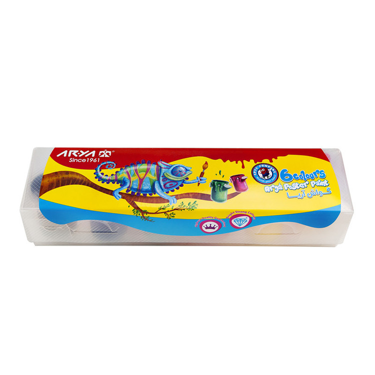 گواش ها گونه ای رنگ هستند که با ترکیب شدن در آب به دست می آیند. تفاوت گواش و آبرنگ این است که که گواش رنگ های مات ایجاد می کند. این محصول می تواند یک ابزار رنگ آمیزی متفاوت برای کودکان باشد و آنها را سرگرم کند. گواش شش رنگ آریا، دارای رنگ های مشکی، سفید، زرد، آبی، قرمز و سبز می باشد. قوطی های این محصول حاوی 30 میلی لیتر رنگ می باشد. همچنین یک کاردک و قلم مو نیز برای استفاده بهتر از این محصول در بسته بندی موجود است. گواش 6 رنگ آریا محصول با کیفیت ایرانی مناسب استفاده کودکان و خردسالان، دانش آموزان و هنرجویان تازه کار رشته های هنر است. ترکیبات گواش 6 رنگ آریا: آب، پارافین، پلی ال، رزین امولسیونی، کربنات کلسیم، رنگ رنگ های گواش آریا را میتوان در صورت لزوم با آب رقیق کرد.