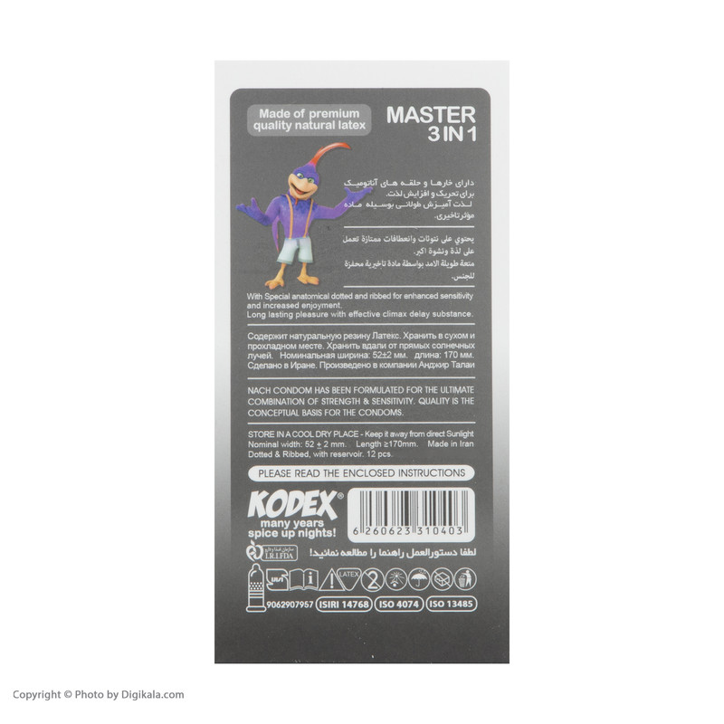 کاندوم تاخیری کدکس مدل Master 3 In 1 بسته 12 عددی
