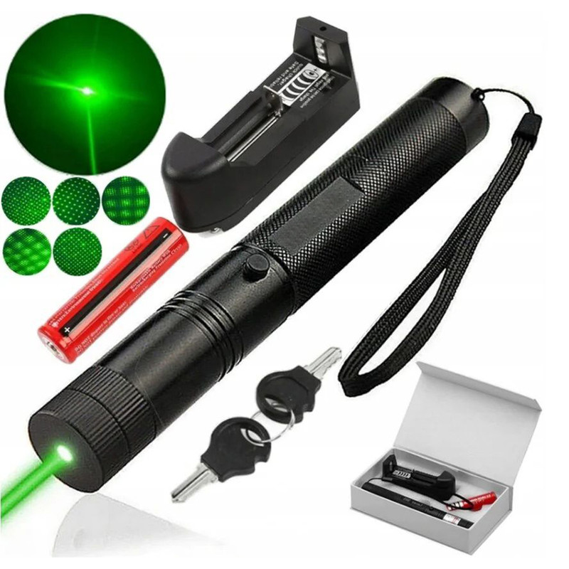 لیزر شارژی سبز رنگ با برد بالا، از جمله لوازم ضرروی کمپینگ، صحرانوردی، نجوم، شنا و مسائل آموزشی است که به راحتی، میتوان سوژه مورد نظر را در روز و شب مشخص کرد. این لیزر شامل یک عدد باتری شارژی، شارژر باتری، قفل کودک و بدنه اصلی میباشد که داخل جعبه تعبیه شده است. نور این لیزر شارژی به رنگ سبز است که با کمک سری آن هم میتوان رقص نور ایجاد کرد و هم با برداشتن سری، از نور خطی آن استفاده کرد. تمامی مدلهای این مدل (پوینتر)، تست شده و کاملا سالم است و از باتری نو شارژی در آن استفاده شده است.