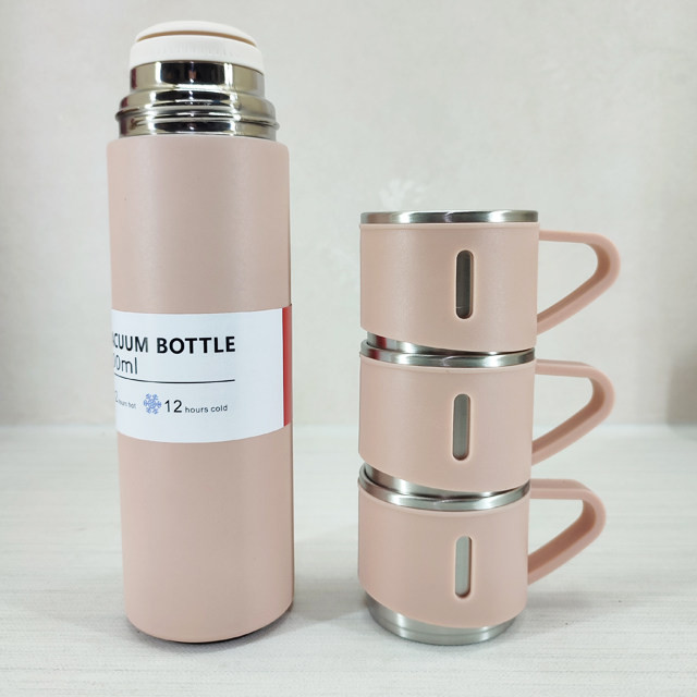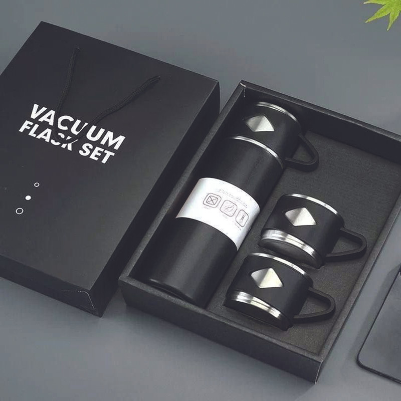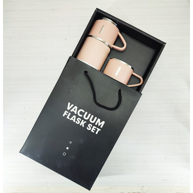 ویژگی های محصول: : امکان استفاده از درب به عنوان لیوان : به همراه دو لیوان اضافه (مجموعا 3 لیوان) : به همراه جعبه و ساک دستی کادویی : دارای استپر در زیر فلاسک : استیل دوجداره درجه یک ضد زنگ : نگهداری دمای سرد و گرم 12-12