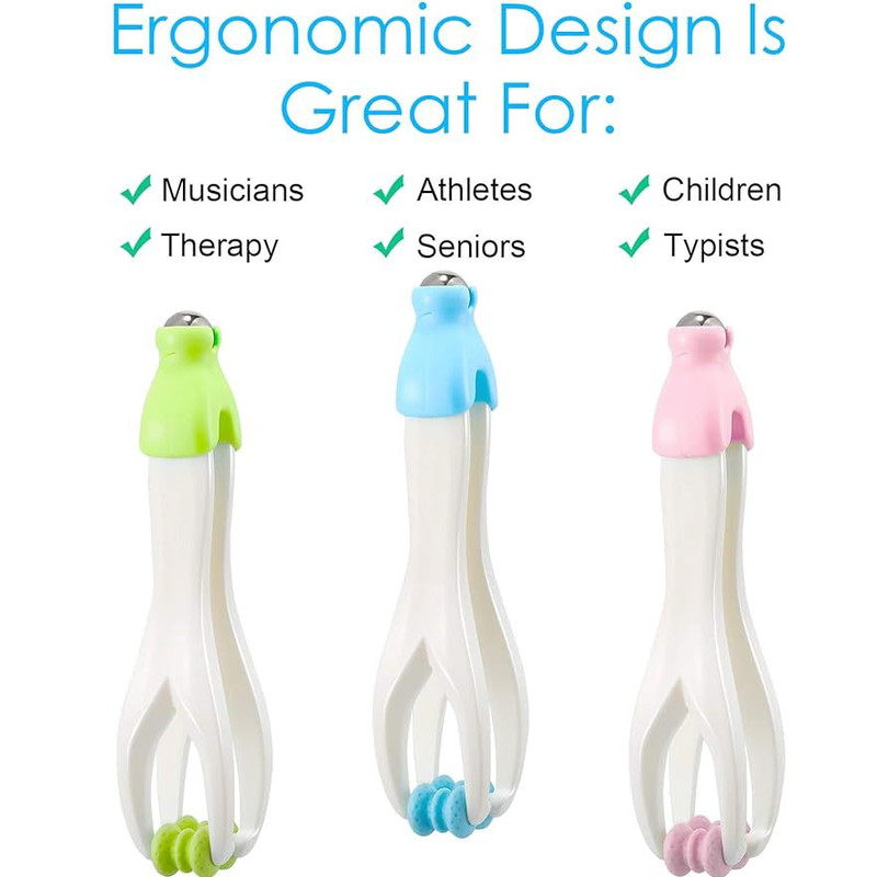 ماساژور انگشت: دارای دو غلتک است که همزمان به دو طرف انگشت فشار وارد میکند، جریان خون را تحریک میکند در حالی که سفتی نیز ایجاد میکند.