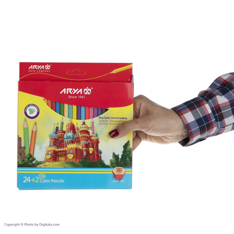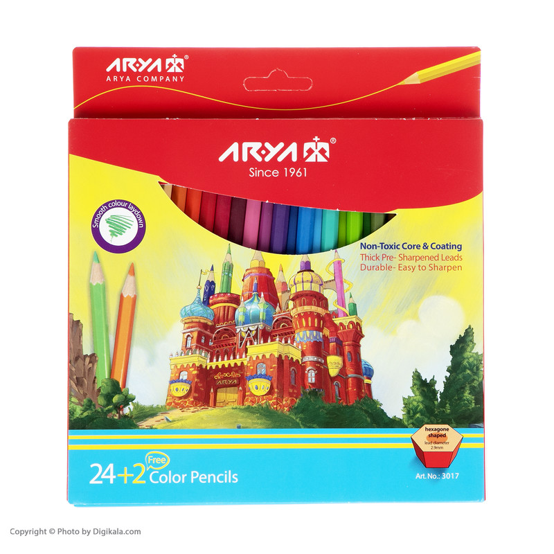 - رنگهای موجود در بستهبندی: 26 رنگ (2 + 24) - دارای نوک محکم و مقاوم در برابر شکستن - با قابلیت تراش آسان - غیر سمی - مناسب برای افراد بالای سه سال - ابعاد بستهبندی: 1 × 19.5 × 22 سانتیمتر - وزن بستهبندی: 162 گرم