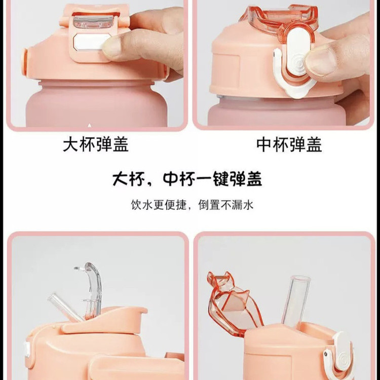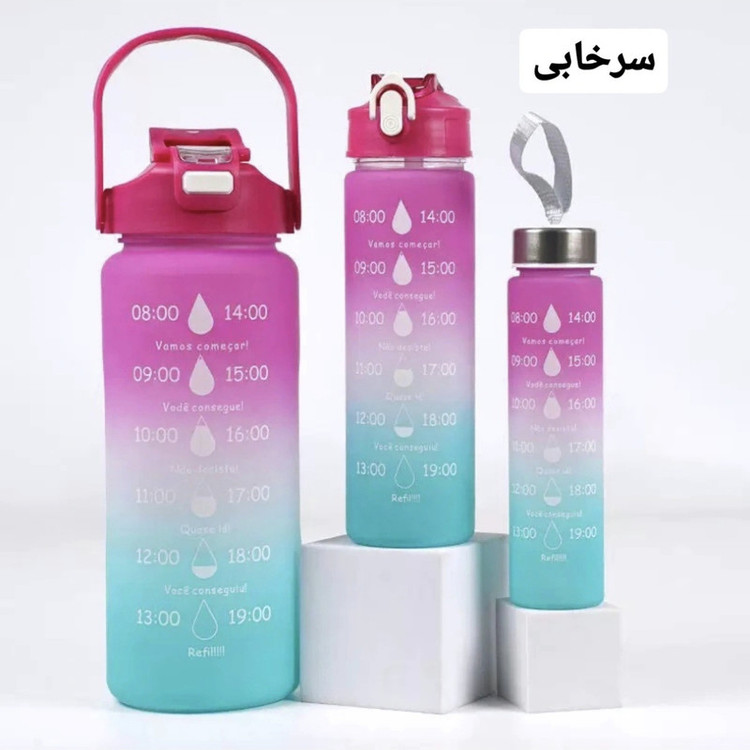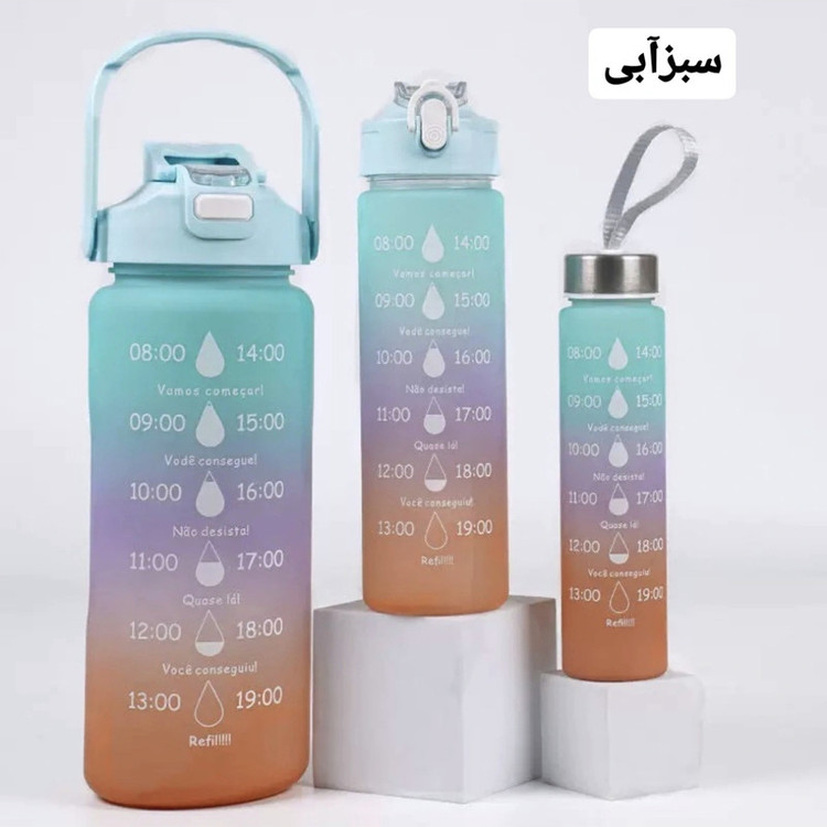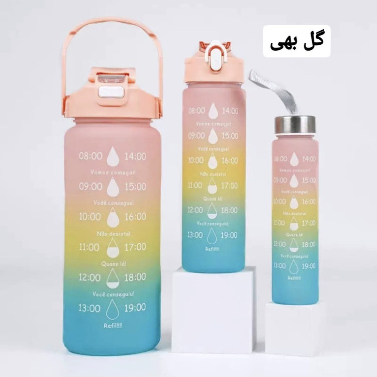 سایر توضیحات: قمقمه بزرگ 2000 میلی لیتر با درب نی نوش و آسان نوش قمقمه متوسط 900 میلی لیتر با درب نی نوش قمقمه کوچک 500 میلی لیتر با درب پیچی 2 عدد نی بلند برای قمقمه بزرگ و متوسط