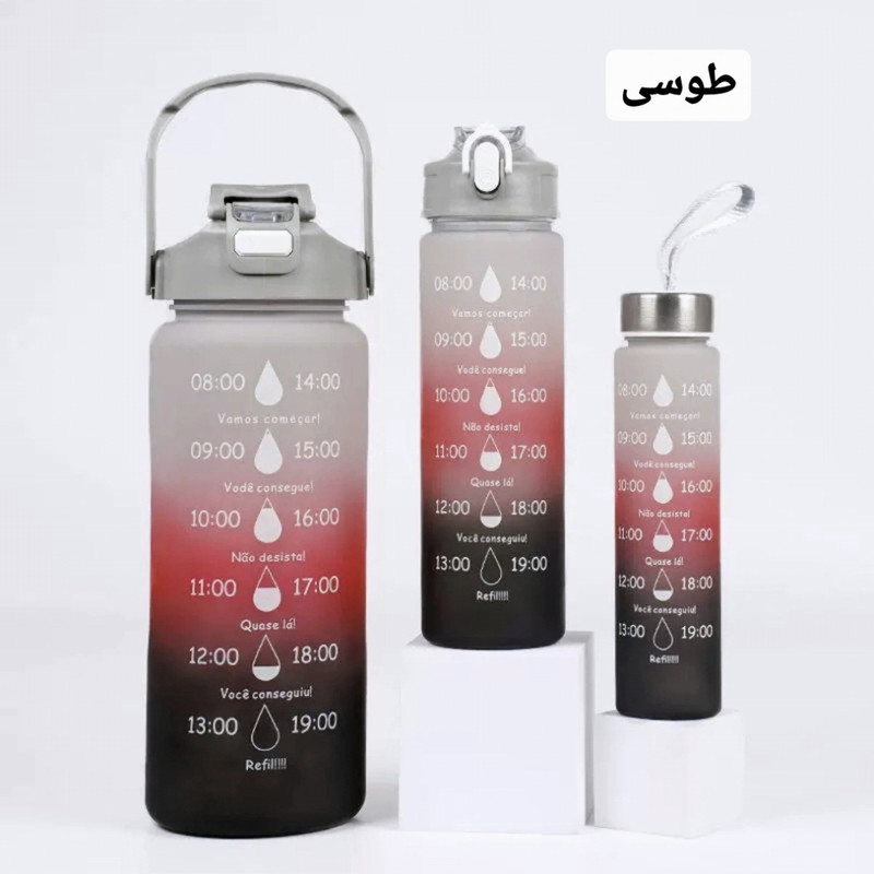 سایر توضیحات: قمقمه بزرگ 2000 میلی لیتر با درب نی نوش و آسان نوش قمقمه متوسط 900 میلی لیتر با درب نی نوش قمقمه کوچک 500 میلی لیتر با درب پیچی 2 عدد نی بلند برای قمقمه بزرگ و متوسط
