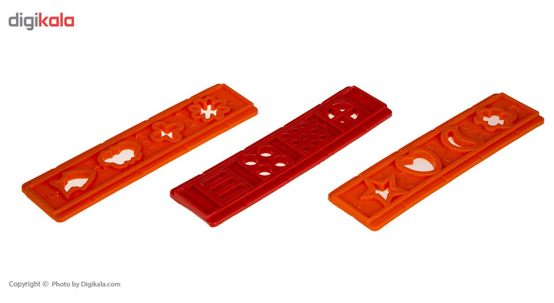 - 2 عدد قالب - 1 عدد غلتک - 1 عدد قیچی - 3 عدد شابلون - 1 عدد سفره نایلونی - 3 عدد ابزار پلاستیکی - 12 رنگ خمیر 22 گرمی - 1 حلقه CD آموزشی خلاقیت با محصولات آریا - 1 عدد سرنگ فشاری جهت فرمدهی خمیر توسط سه شابلون با 12 طرح مختلف