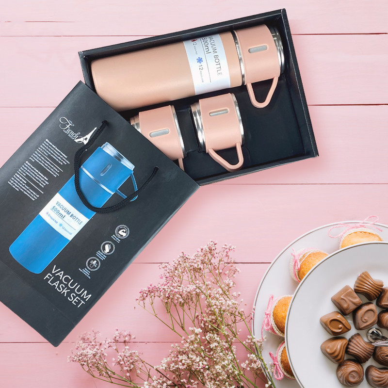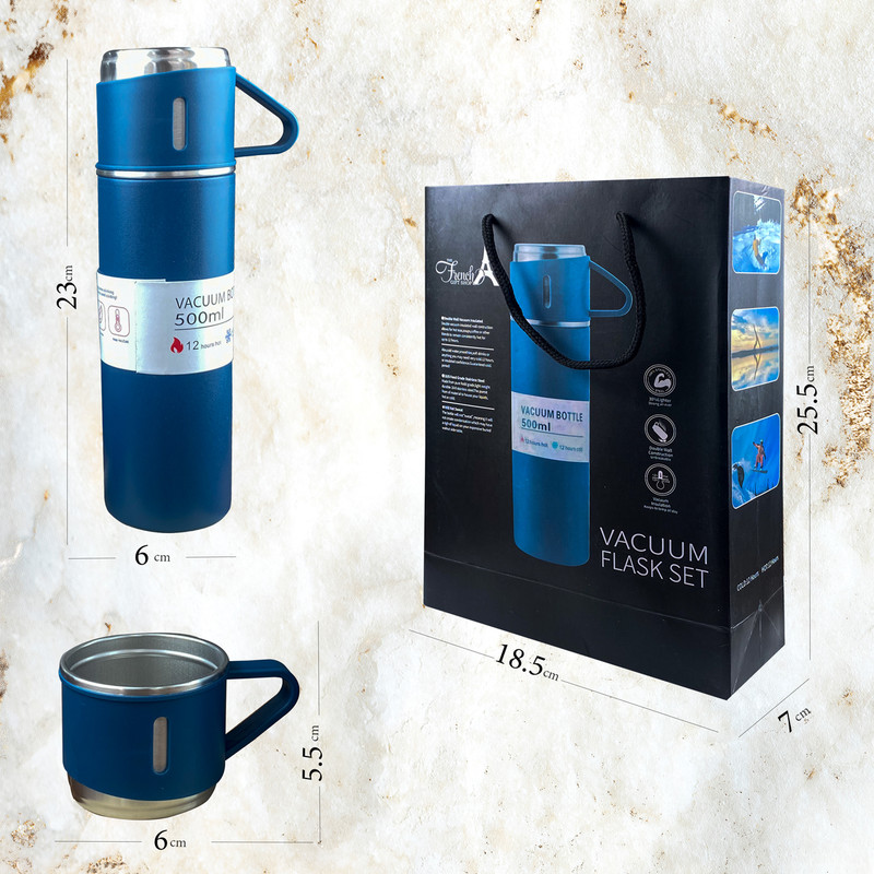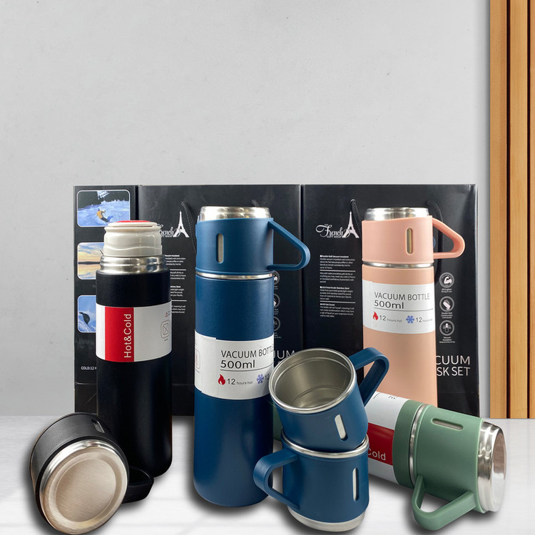 فلاسک مدل کادویی NEW VACUUM FLASK SET گنجایش 0.5 لیتر به همراه لیوان مجموعه 3 عددی