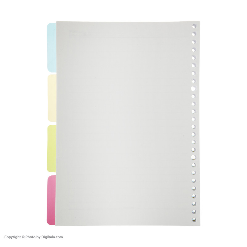 سایر توضیحات : - دارای 4 تقسیم کننده رنگی - مخصوص کلاسور 26 حلقه - در ابعاد استاندارد 25.5 × 18.5 سانتی متر