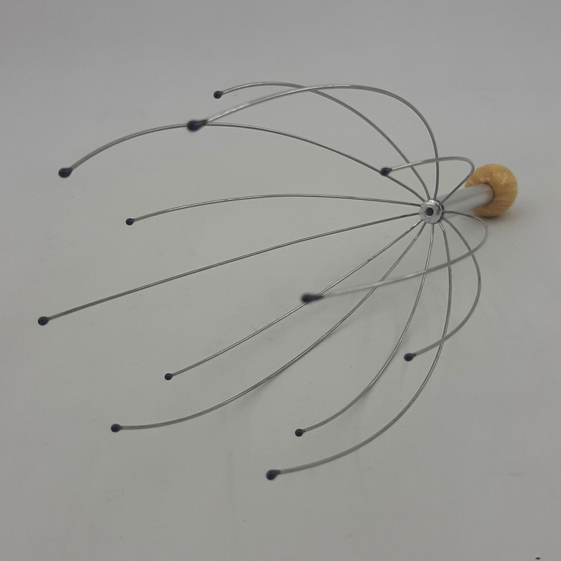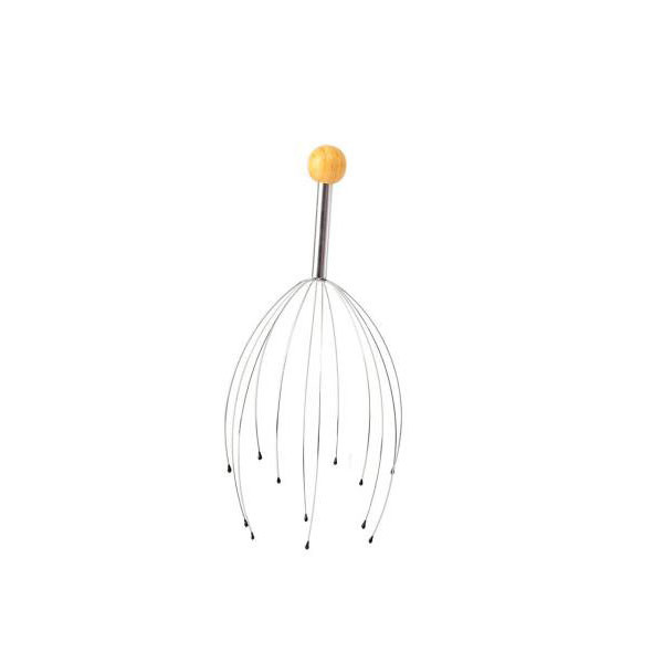 ماساژ دادن بدن موجب افزایش جریان خون داخل رگها میشود. ماساژ سر نیز با افزایش جریان خون باعث آرامش فکری، کاهش استرس و حتی سردرد میشود. ماساژ سر عموماً با انگشتان دست انجام میشود اما راه دیگر استفاده از ماساژور دستی است. این ماساژور 12 عدد میلهی فلزی دارد که به یک دسته وصل هستند. در انتهای هرکدام از این میلهها یک سری کروی قرار گرفته است تا در هنگام تماس با سر آسیبی به پوست سر نرسد. با استفاده از دستهای که در انتهای این ماساژور قرار گرفته، میتوان سریهای آن را روی پوست سر قرار داد و با حرکت دادن آن میزان جریان خون بهمرور افزایش مییابد. یکی از دلایل ریزش مو، کاهش جریان خون در رگهای سر است. برای جلوگیری از این اتفاق میتوان روشهای گوناگونی را به کار برد که یکی از آنها ماساژ دادن پوست سر است. ماساژ دادن پوست سر، موجب افزایش جریان خون در رگها، تغذیهی بهتر پوست و مو و تقویت پیاز مو میشود. استفاده از ماساژور پیش از خواب کمک میکند که خوابی عمیقتر داشته باشید. هرچند این وسیله ظاهری عجیب دارد؛ اما قیمت پایین و کارکرد جالبش آن را در دستهی محصولات بسیار کاربردی قرار میدهد. شاخه های این محصول از جنس استیل می باشند که باعث میشود با بدن سازگاری داشته باشند و زنگ نزنند. هم چنین در سر شاخک ها زایده هایی برای جلو گیری از خراش پوست تعبیه شده است که بسیار مقاوم می باشند.