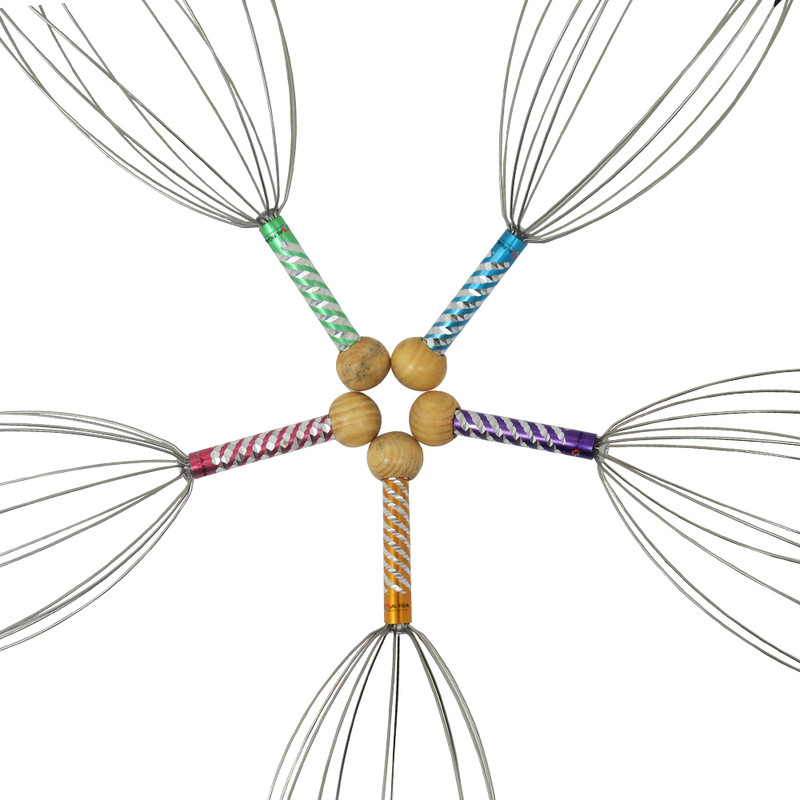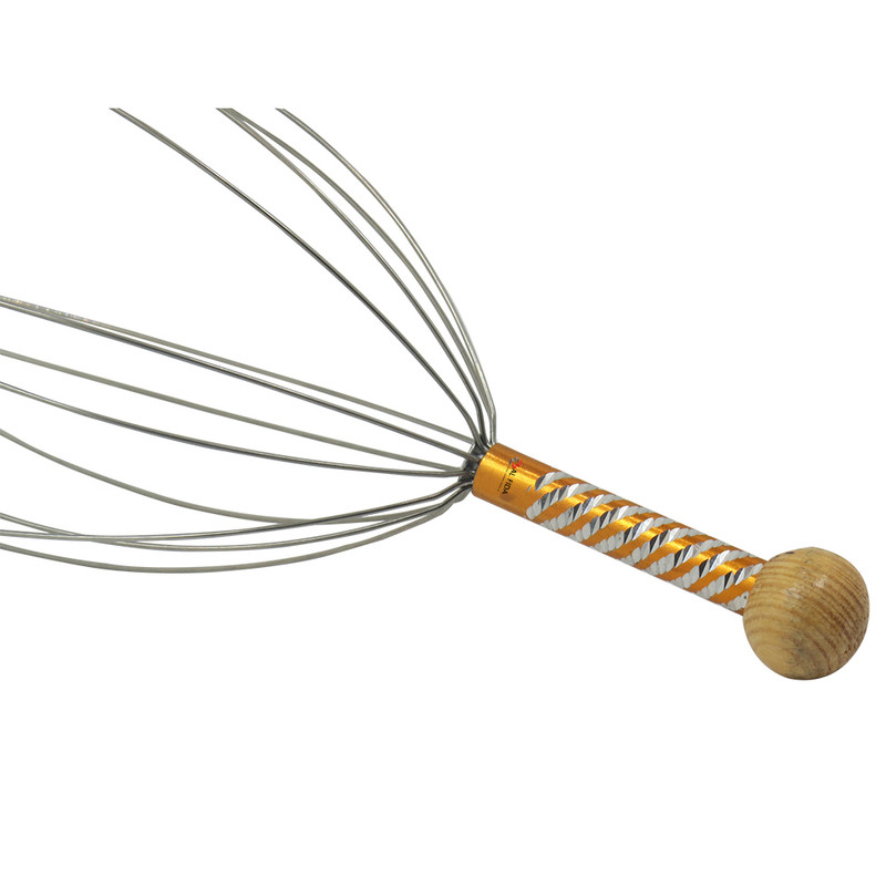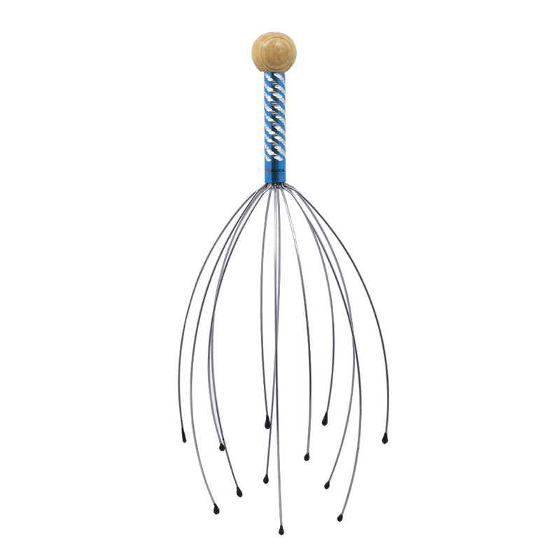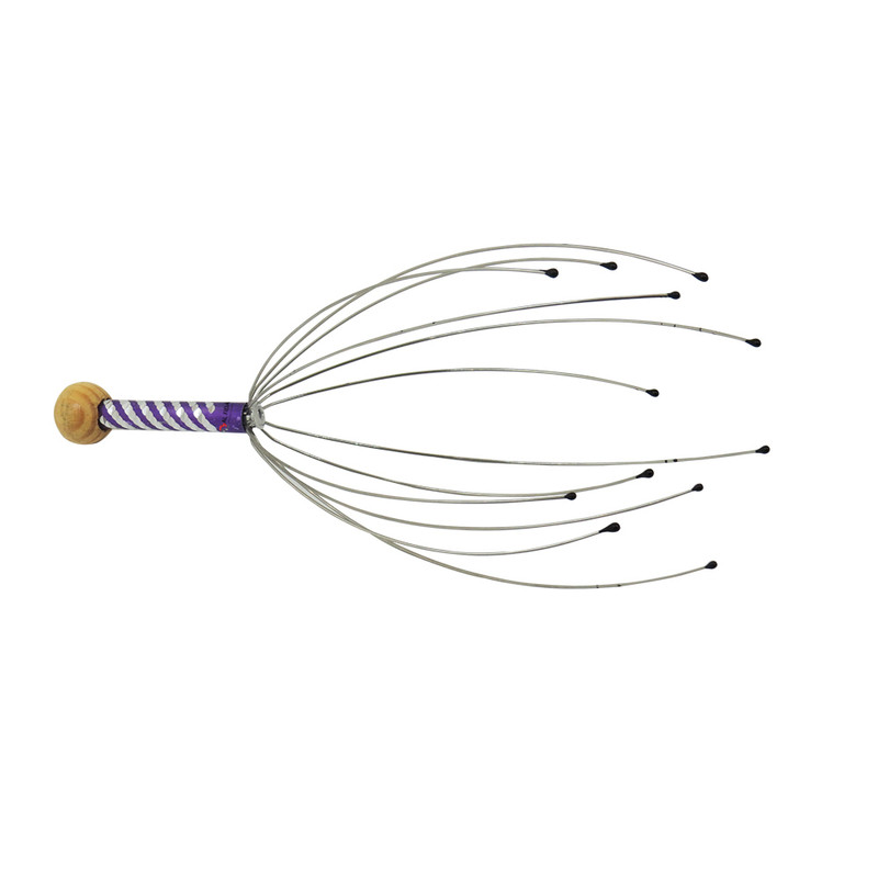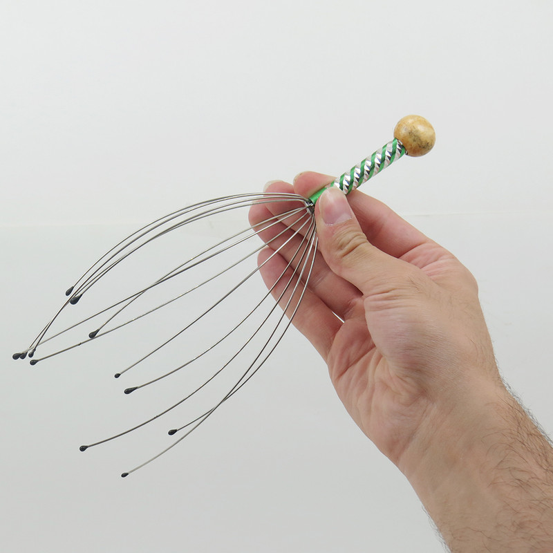 ماساژ دادن بدن موجب افزایش جریان خون داخل رگها میشود. ماساژ سر نیز با افزایش جریان خون باعث آرامش فکری، کاهش استرس و حتی سردرد میشود. ماساژ سر عموماً با انگشتان دست انجام میشود اما راه دیگر استفاده از ماساژور دستی است. این ماساژور 12 عدد میلهی فلزی دارد که به یک دسته وصل هستند. در انتهای هرکدام از این میلهها یک سری کروی قرار گرفته است تا در هنگام تماس با سر آسیبی به پوست سر نرسد. با استفاده از دستهای که در انتهای این ماساژور قرار گرفته، میتوان سریهای آن را روی پوست سر قرار داد و با حرکت دادن آن میزان جریان خون به مرور افزایش مییابد. یکی از دلایل ریزش مو، کاهش جریان خون در رگهای سر است. برای جلوگیری از این اتفاق میتوان روشهای گوناگونی را به کار برد که یکی از آنها ماساژ دادن پوست سر است. ماساژ دادن پوست سر، موجب افزایش جریان خون در رگها، تغذیهی بهتر پوست و مو و تقویت پیاز مو میشود. استفاده از ماساژور پیش از خواب کمک میکند که خوابی عمیقتر داشته باشید. هرچند این وسیله ظاهری عجیب دارد؛ اما قیمت پایین و کارکرد جالبش آن را در دستهی محصولات بسیار کاربردی قرار میدهد. شاخه های این محصول از جنس استیل می باشند که باعث میشود با بدن سازگاری داشته باشند و زنگ نزنند. هم چنین در سر شاخک ها زایده هایی برای جلوگیری از خراش پوست تعبیه شده است که بسیار مقاوم می باشند و در رنگهای نارنجی ، سبز ، بنفش ، صورتی و آبی می باشد.
