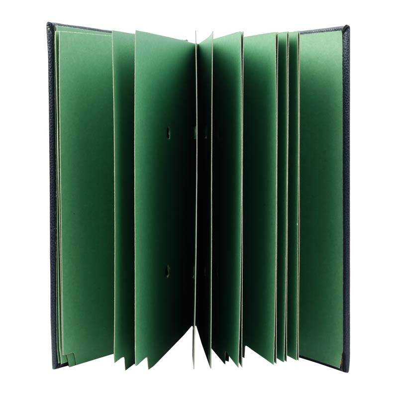 جلد ساخته شده از چرم مصنوعی دور دوخت شده و 15 برگه رنگی از جنس مقوا محفظه قرار دادن کارت بر روی جلد و مناسب برای سازماندهی اسناد، چک و …