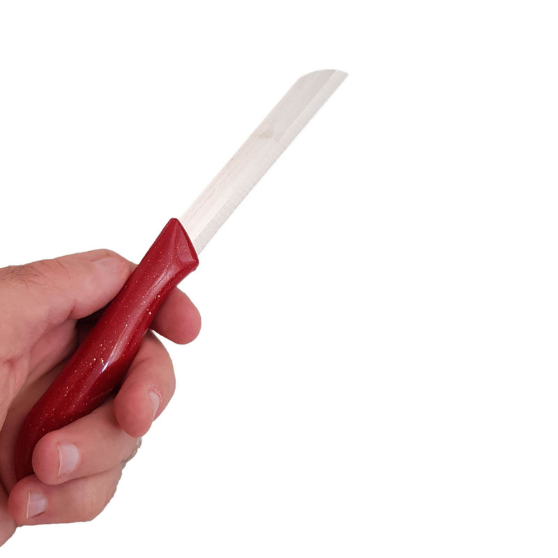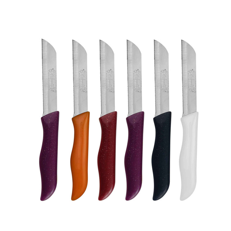 این مدل با داشتن تیغه استیل ضد زنگ و دسته های این کارد از جنس پلی پروپیلین ضد حساسیت و آنتی باکتریال است و به هیچ عنوان شکسته و یا از تیغه جدا نمی شود .مدلی بسیار کارآمد برای تمام مصارف خانگی بوده که شما را از داشتن یک چاقوی تیز و و مقاوم بی نیاز خواهد نمود. این چاقو ها به صورت تکی عرضه میشود .