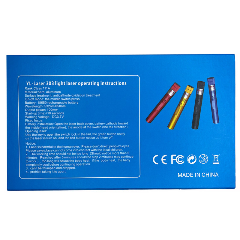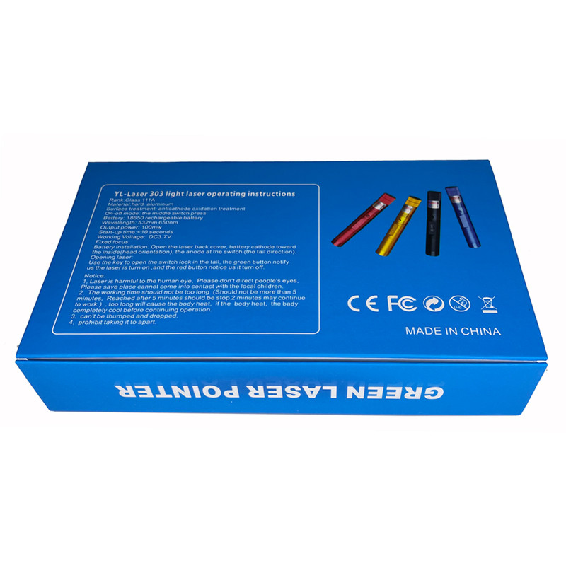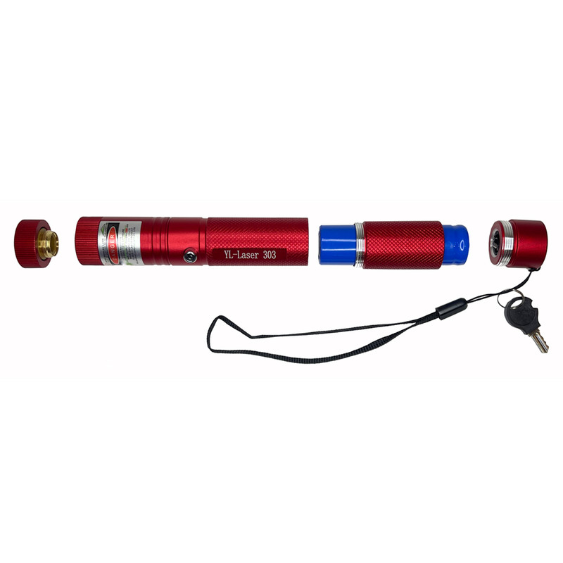 لیزر پوینتر مدل YL-Laser 303 GREEN LASER POINTER با نور سبز ، بدنه تمام فلز از جنس آلیاژ الومینیوم با روکش رنگ کوره ای ، قابلیت تنظیم شعاع نور با برد واقعی 6 کیلومتر ، دارای سَری جدا شونده ی رقص نور ستاره ای با چرخش 360 درجه ، به همراه باتری اورجینال WZS با قدرت بی نظیر 6800mAh میلی آمپر ساعت و شارژر برق شهری و کلید قفل لیزر که در درون جعبه محصول موجود میباشند.