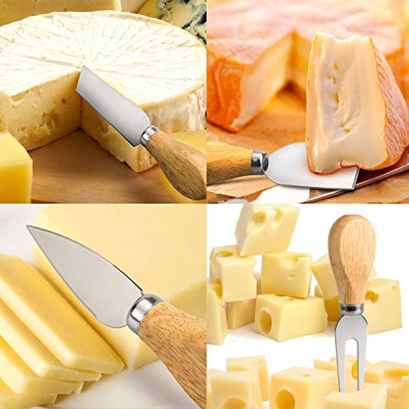 شامل یک کارد اسلایسر پنیر جهت ورقه ورقه کردن و برش پنیر و سرو کیک،یک چنگال جهت نگه داشتن پنیر و سرو پنیر و کیک،یک کارد پنیر و کره نرم،و یک کارد پنیر سفت و کره منجمد می باشد