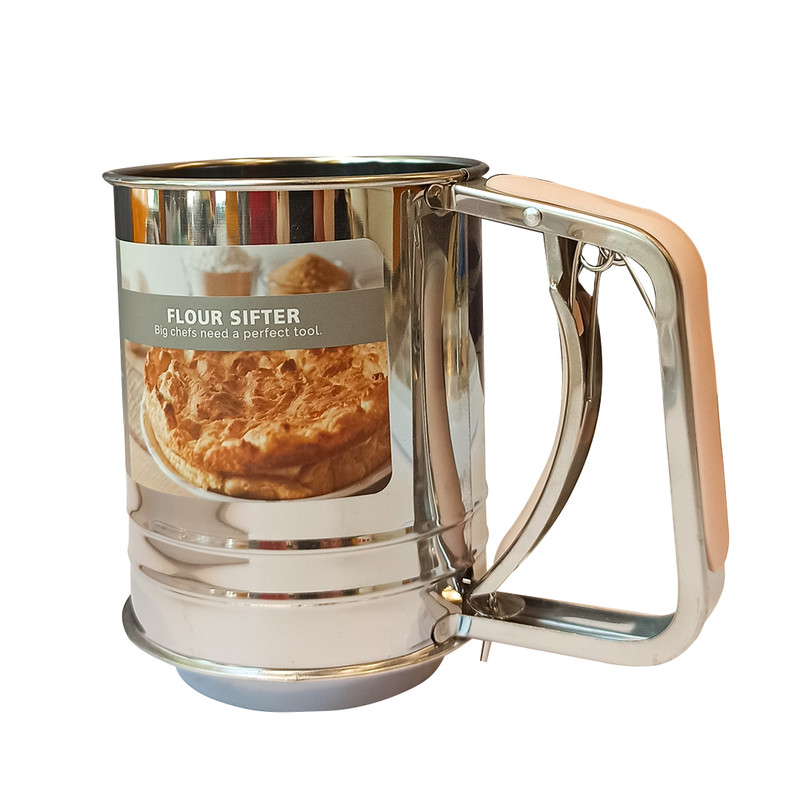 دارای 2 فیلتر برای همزمان 2 بار الک کردن آرد دارای دسته ی استیل با روکش سیلیکونی