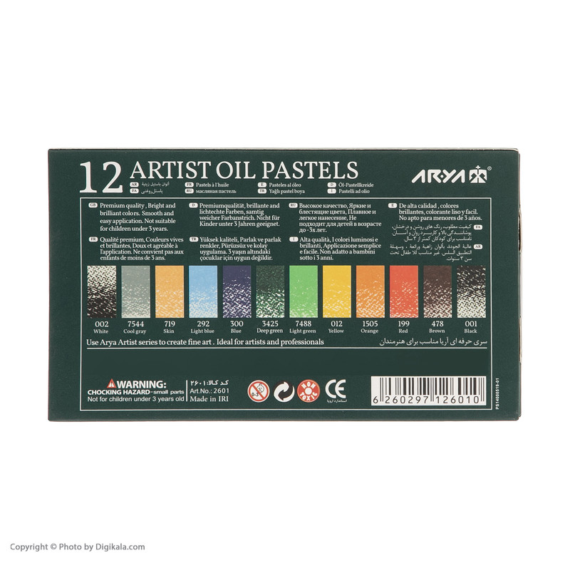 مداد شمعی 12 رنگ آریا مدل Artist کد 2601