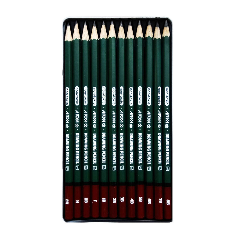 مغزی با کیفیت چوب مداد بدست آمده از جنگل های تجدید پذیر روکش مداد از مواد غیر مضر و غیر سمی بسته حاوی درجات سختی مختلف مغز مداد (2H,H,HB,F,B,2B,3B,4B,5B,6B,7B,8B)