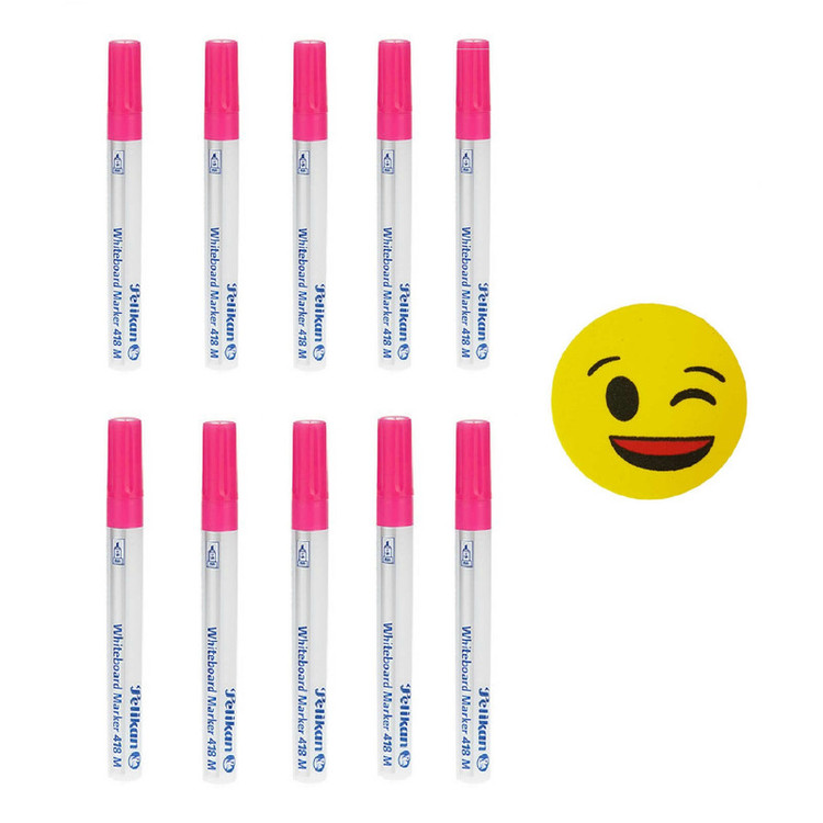 بسته 10 عددی ماژیک وایت برد پلیکان به همراه 1 عدد تخته پاکن فانتزی