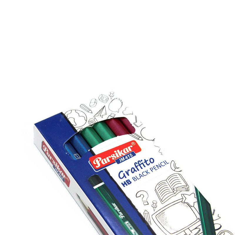 مداد مشکی 12 عددی پارسی کار مدل JM 415 از چوب مرغوب و باکیفیت تهیه شده است. مداد Parsikar JM 415 دارای نوک مقاوم و درجه سختی HB می باشد. مداد پارسی کار JM 415 دارای سطح مقطع شش ضلعی می باشد که مانع لیز خوردن مداد در دست و روی میز می شود.