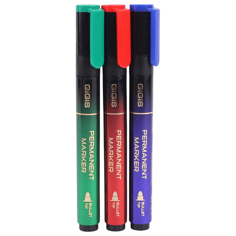 ماژیکهای جیجیس (GIGIS) با طراحی حرفهای درپوش و گیره، الیاف اکریلیک و جوهر با کیفیت بالا که شامل ترکیبات آلی و مواد روغنی است، تولید میشوند. این ماژیکها با قابلیت شارژ شدن جوهر مجدد ، برای نوشتن بر روی سطوح مختلفی از جمله کارتن، شیشه، سرامیک و سنگ و پلاستیک، و فلزات مناسباند و در برابر آب، آفتاب، رطوبت و گرد و غبار مقاوم هستند. ویژگیهایی همچون پخش نشدن جوهر، ماندگاری طولانی، پررنگ بودن جوهر و یکدستی نوشتار، این ماژیکها را برای استفادههای متنوع ایدهآل میسازد. ماژیکهای جیجیس با طراحی ارگونومیک، بدون بوی نامطبوع و غیر سمی (فاقد مواد زایلن و تولوین) میباشد.