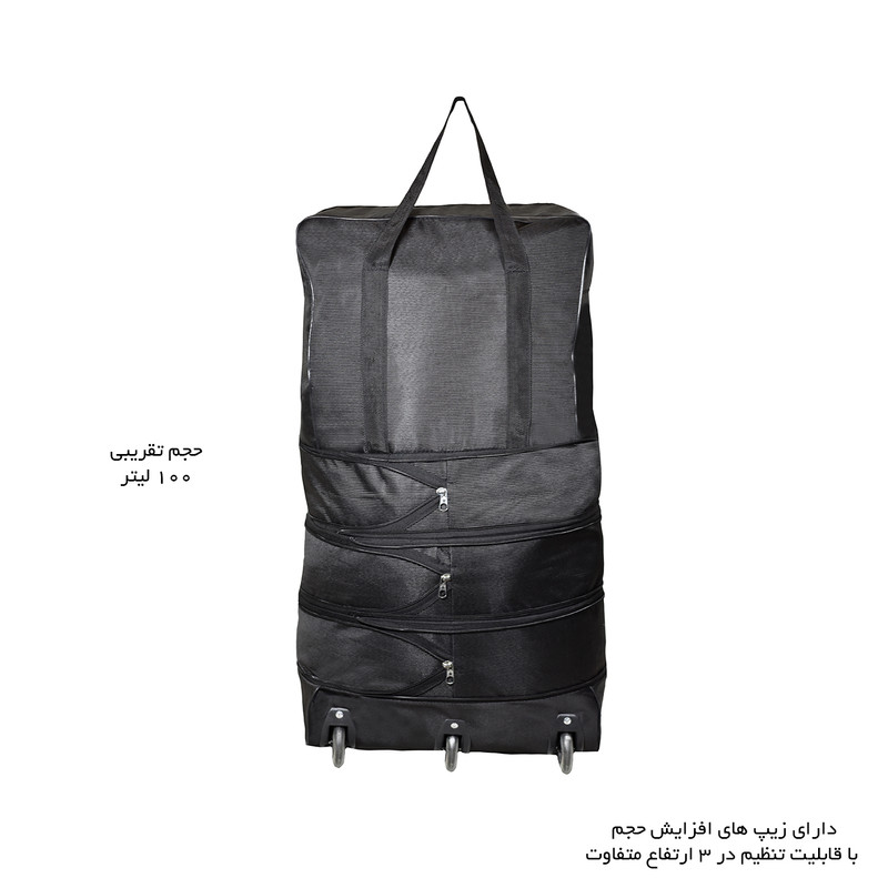سایر توضیحات : دارای زیپ های افزایش حجم با قابلیت تنظیم در سه ارتفاع متفاوت مجهز به کفی فایبر گلاس ضد ضربه