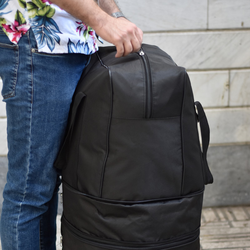 توضیحات دسته : مجهز به دو دسته ضخیم نوار دوزی جهت کشیدن ساک مسافرتی