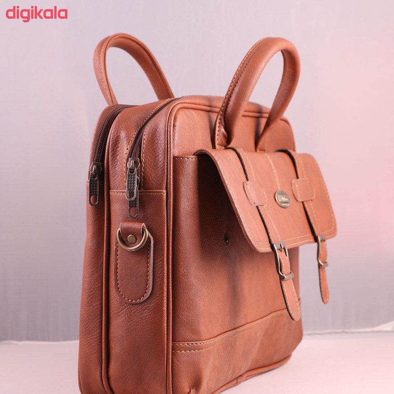 - چرم مصنوعی با کیفیت - آستر مرغوب - کیف کاملا نوار دوزی شده - محل نگهداری لپ تاپ تا سایز 15 اینچ - سرزیپ فلزی - بند قابل تنظیم