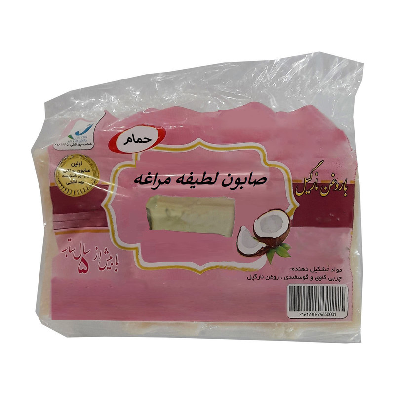 این بسته شامل 6 عدد قالب صابون حدود 250 گرمی سنتی مدل سفید مراغه در بسته بندی حدود 1500 گرمی است. صابون مراغه که به صورتی کاملا طبیعی تولید می شود با ماندگاری بیش از 10 سال و با قدمتی بیش از۱۵۰ سال معروف ترین صابون سنتی کشور بوده و سوغاتی اصلی و ارزشمند این شهرستان به حساب می آید.این صابون که به صورت سنتی و نیمه صنعتی تولید می شود، به رغم رواج صابون های صنعتی همچنان به عنوان شوینده اصلی در خانه های مردم این شهرستان و سایر شهرهای کشور مورد استفاده قرار می گیرد. این صابون از دنبه گوسفند و سود سوزآور تشکیل شده و در ساخت آن از مواد شیمیایی استفاده نمی شود. تا پیش از تولید صابون های صنعتی، در بیشتر شهرهای ایران مردم از صابون مراغه استفاده می کردند و هم اکنون نیز در بازار سنتی همه شهرهای ایران، صابون های سنتی مراغه طرفداران زیادی دارد. میزان ماده قلیایی صابون مراغه در مقایسه با سایر صابون ها بیشتر است و لذا برای افرادی که پوست چربی دارند مناسب تر است. مناسب ترین شستشو دهنده های بدن و صابون با داشتن میزان ماده قلیایی بین 5.5 تا 6 درجه برای بهداشت پوست و مو است. برخی شستشو دهنده ها و صابون ها از میزان ماده قلیایی بین 8 تا 9 درجه تهیه و تولید می شود که اغلب برای افرادی که پوستی بسیار چرب دارند و به شستشوی بیشتری نسبت به سایر افراد نیاز دارند قابل استفاده است.