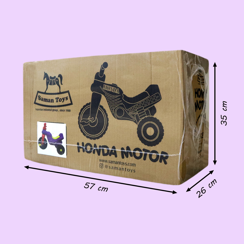 موتور هوندا یک سه چرخه پدالیست که برای فرزندان دلبند شما در سنین 3 تا 6 سالگی با رنگبندی متنوع ارائه شده است. این محصول دارای ابعاد 50 × 40 × 70 سانتیمتر بوده و وزنی معادل 2.5 کیلوگرم دارد. بچهها حین بازی با این اسباببازی بهتدریج مهارتهای حرکتی خود را افزایش میدهند. بازی با این موتور در افزایش مهارت حفظ تعادل کودکان بسیار مفید است. میتوان از موتور هوندا در خانه یا بیرون و در فضای باز استفاده کرد. از ویژگیهای بارز این محصول میتوان به فرمان پذیری، استحکام و دوام بالا اشاره کرد، همچنین توانایی تحمل وزن تا 40 کیلوگرم را داراست.