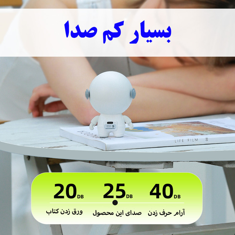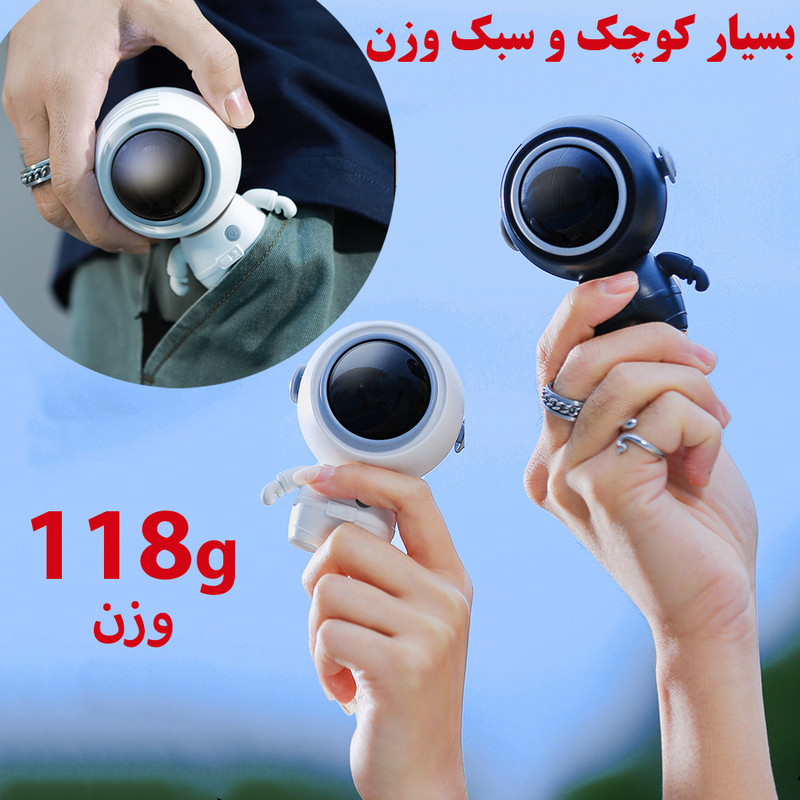 در روزهای گرمای تابستان یکی از ضروری ترین وسایلی که میتوانید همراه خود داشته باشید، پنکههای همراه هستند. این پنکهها با خنک کردن شما در روزهای گرم تابستان به یک همراه همیشگی شما در هنگام خرید، روزهای کاری و سفر تبدیل خواهند شد. پنکه شارژی مدل MF040 با طرح فضانورد خود یک محصول خاص و با زیبایی منحصر به فرد است. این محصول با داشتن موتوری از نوع Brushless علاوه بر ارائه دادن سرعت، گشتاور و بهرهوری بالاتر، مصرف انرژی کمتری دارد و از این طریق شارژدهی و طول عمر باتری را افزایش میدهد. باتری محصول دارای ظرفیت 900 میلی آمپر است که قابلیت شارژدهی تا 5 ساعت را دارد. این پنکه دارای سه حالت مختلف سرعت باد است که با هر بار فشردن دکمه، سرعت باد افزایش مییابد. پنکه G01 قابل استفاده در حالتهای مختلف است و میتوان آن را به صورت دستی، رومیزی و آویز گردنی استفاده کرد. درگاه شارژ محصول از نوع Type-C است و با سرعت خوبی شارژ می شود. خروجی باد در این محصول قابلیت چرخش 360 درجه دارد و امکان تنظیم جهت وزش باد در زاویه دلخواه را فراهم میآورد. بند آویز گردنی محصول نیز از جنس سیلیکون است و قابلیت تنظیم اندازه در 3 حالت را دارد و برای تمامی سنین مناسب است.