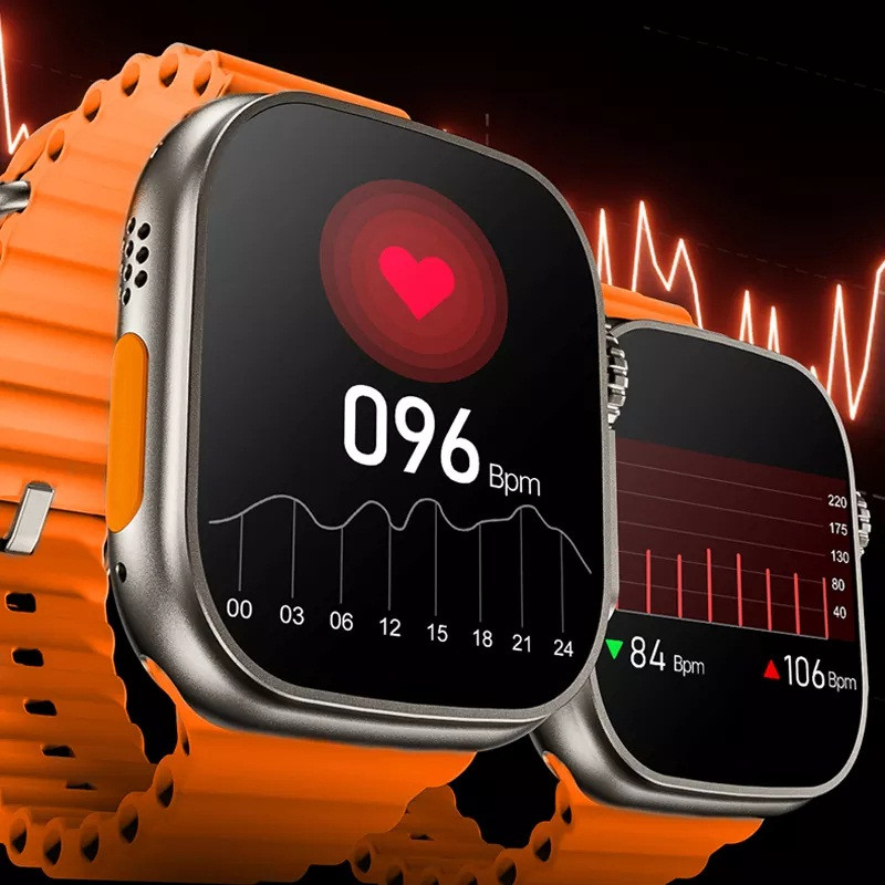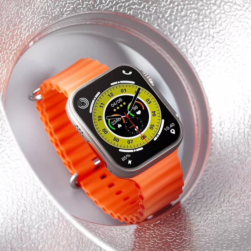 ساعت هوشمند HK10PROMAX Ultra 49mm یکی از بهترین و کاملترین نمونه ساعتهای هوشمند تولید شده از سری ultra 8 در سایز 49میلی متر تا به امروز است که به تازگی وارد بازارهای جهانی شده است. بزرگترین وجه تمایز این مدل را در صفحه نمایش بسیار با کیفیت با نرخ به روز رسانی 90hz و با کیفیت تصویر بسیار بالا میتوان یافت که بزرگترین و نزدیکترین صفحه نمایش ساعتهای هوشمند به اپل واچ تا به امروز است. فعال بودن هر 3 دکمه( 2 دکمه در سمت راست و یک دکمه در سمت چپ) ،صفحه نمایش بسیار با کیفیت و روان آن در کنار داشتن دکمه جادویی یا مجیک باتون یا دکمه چرخشی برای تغییر صفحات و بزرگنمایی و کوچکنمایی همچنین داشتن شارژر وایرلس دقیقا مشابه اپل از بهترین ویژگی های اولیه آن است. در بخش واچ فیس نیز بر روی صفحه ساعت این بار شما با چندین واچ فیس زیبا روبرو هستید . این مدل از تمامی سنسورها از جمله سنسور ضربان قلب، سنسور نوار قلب ECG، سنسور فشار خون، سنسور اکسیژن خون، سنسور کیفیت خواب، قدم شمار و کالریسنج بهره میبرد.همچنین تنوع کاملی از انواع برنامههای ورزشی، این مدل رو به یک دستیار حرفهای ورزشی تبدیل کرده است.یکی از بزرگ ترین تفاوت هایی که ساعت هوشمند HK10PROMAX Ultra 49mm با سایر ساعت ها دارد، دکمه اکشن می باشد که به سمت چپ فریم ساعت اضافه شده است. این دکمه برای دسترسی سریع به حالت های ورزشی ساعت می باشد. در اخر توصیه میگردد جهت شارژ از اداپتور تک امپر و غیر فست استفاده شود.