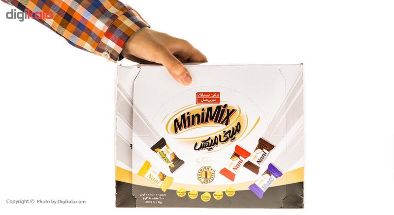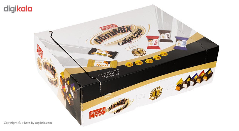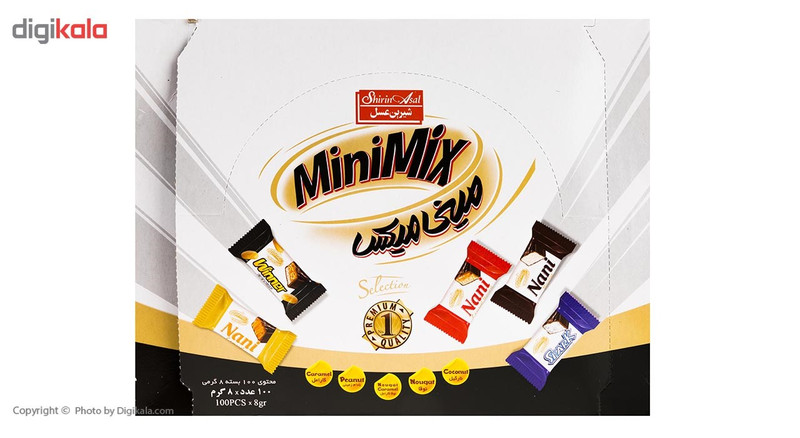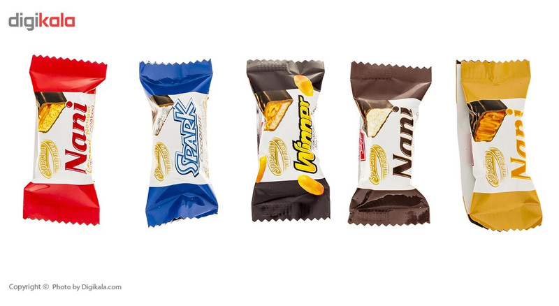 بسته 800 گرمی شکلات روکشدار حاوی : - فرآورده نارگیلی با روکش شکلات - شکلات نوقا - شکلات نوقا کارامل - شکلات بادام زمینی - شکلات کارامل حاوی 100 بسته 8 گرمی پروانه بهداشتی : 21/15839 21/15840 21/12703 21/12846 21/10600
