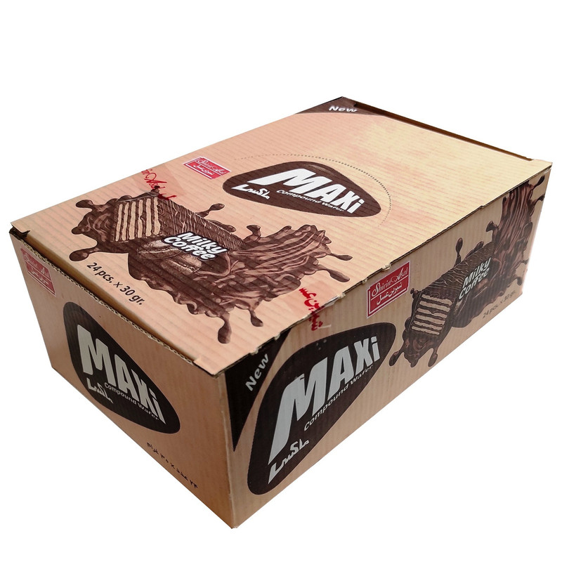 ویفر روکش کاکائو با طعم قهوه مکسی شیرین عسل - 30 گرم بسته 24 عددی