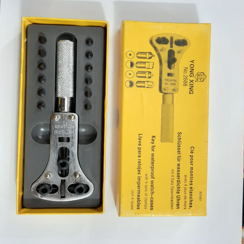 آچار جاکس هداپا مدل 400 یک آچار سایز متوسط مخصوص باز کردن درب ساعت های مچی زنانه و ساعت های مچی سایز متوسط و استاندارد میباشد که دارای یدکی های مختلف از جنس فولاد آبدیده بوده و مقاومت بالایی در برابر ضربه دارد و از ایجاد خط و خش روی درب ساعت جلوگیری میکند و با این آچار میتوان جهت تعمیرات و باز و بست ساعت های مچی استفاده کرد و از دو فک بالایی این آچار اکثرا استفاده میشود چنان چه سایز این دوفک بالایی کوچک بود و به ساعت مچی نخورد میتوان از یک فک بالا و یک فک پایین یا وسط استفاده نمود که طول دو فک بیشتر شده و میتوان درب هر ساعت را به صورت اوریب و از بغل باز نمود
