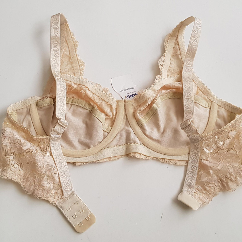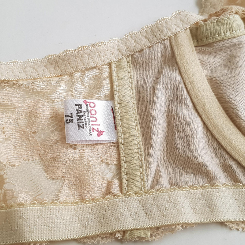 سوتین زنانه پانیذ مدل فنردار گیپوری کد 66365-new رنگ کرم