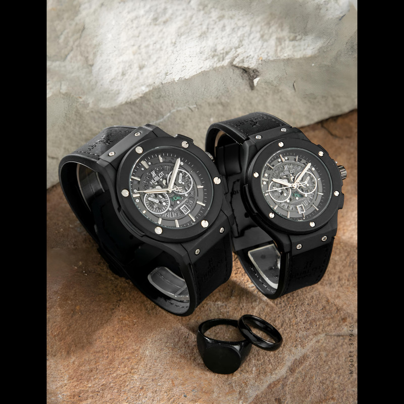 ست ساعت ارایه شده یکی از با کیفیت ترین نوع ساعت است که دارای قفل کلیپسی بوده و مجهز روز شمار می باشد. صفحه ساعت طرح اسکلتون سه موتور بوده و موتور آن، از نوع کوارتز و اساسا تک موتور است. همچنین ساعت به همراه جعبه مخصوص فروشگاه خدمت شما ارائه می گردد.