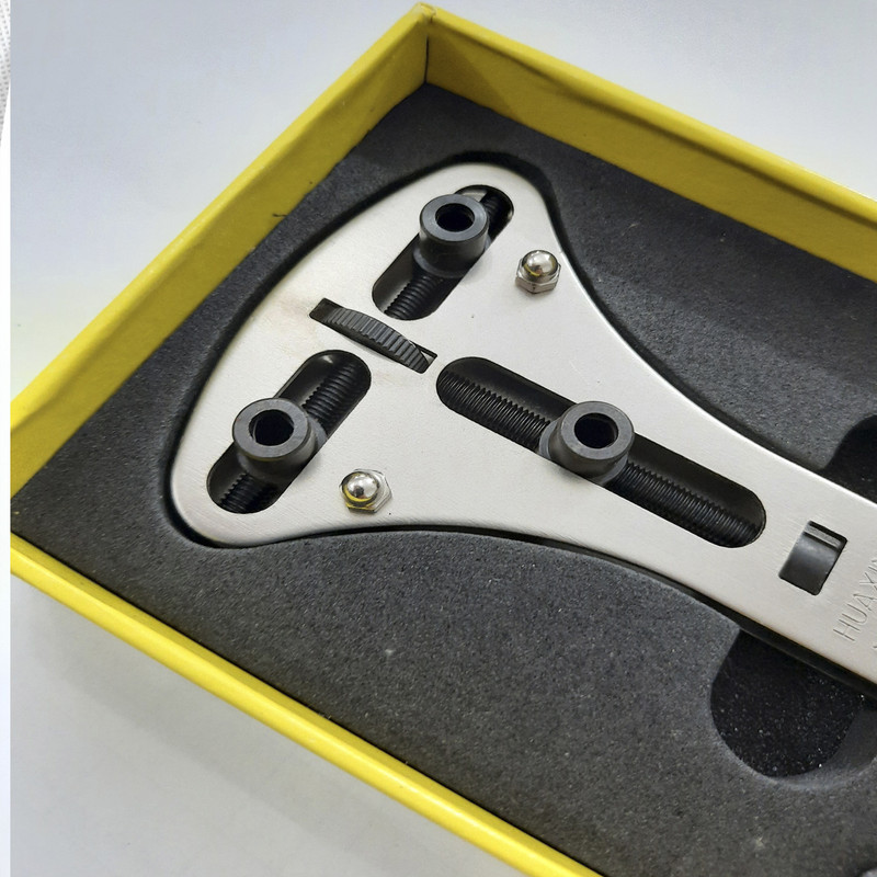 آچار جاکس ساعت هواکسینگ مدل H2819 سایز 3 اینچ یک آچار سایز بزرگ مخصوص بازکردن درب ساعت های مچی کاربرد داشته و یک ابزار حرفه ای میباشد که دارای 12 عدد یدکی فولادی بوده که به صورت دقیق روی در ساعت فیکس میشود و از ایجاد خط و خش جلوگیری میکند و جنس این جاکس استیل ضد زنگ میباشد که تمامی ساعت های مچی را پوشش میدهد.