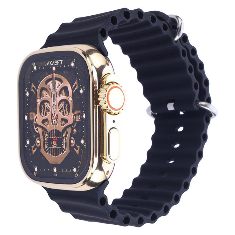 بندفلزی بارنگ طلایی و بندسیلیکونی بارنگ مشکی وبدنه ازجنس استیل ورنگ طلایی