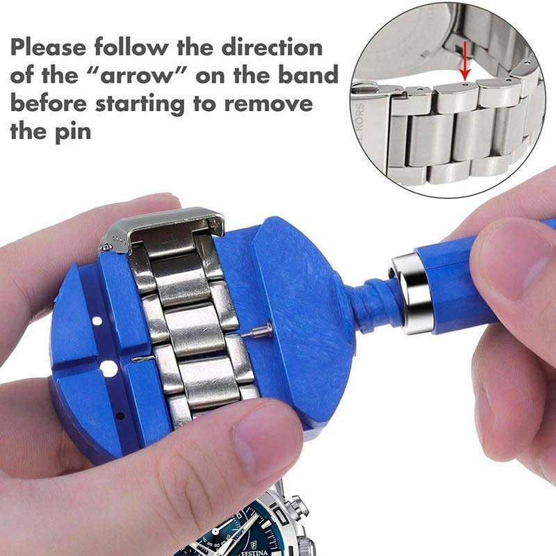 مناسب: تعویض ، کوتاه کردن و نصب انواع بند فلزی ساعت های هوشمند و معمولی توضیحات: با سوزن پین بازکن پیچی و قابل تعویض