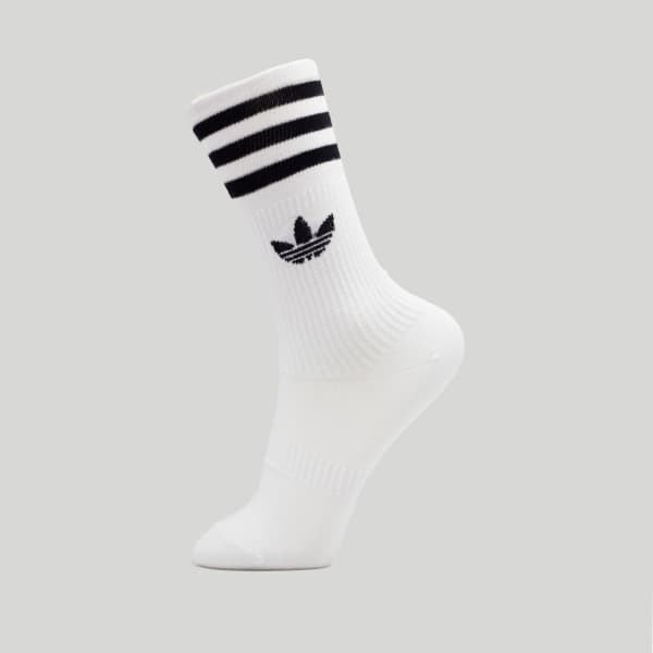 جوراب ورزشی زنانه مدل سه خط رنگ سفید، تشکیل شده از پلی استر، الاستین، پنبه، نسبتا نازک و دارای قابلیت جذب رطوبت بالا، مناسب فعالیت های ورزشی و روزمره.
