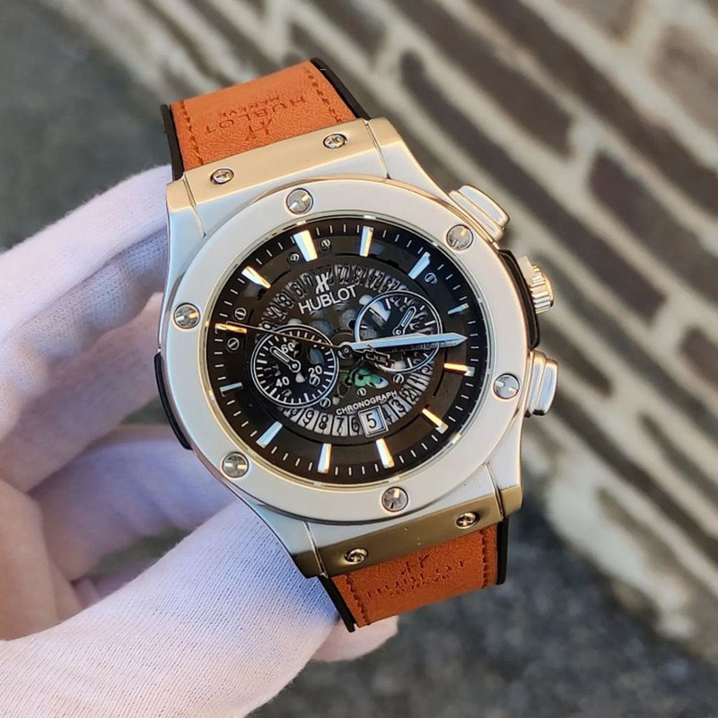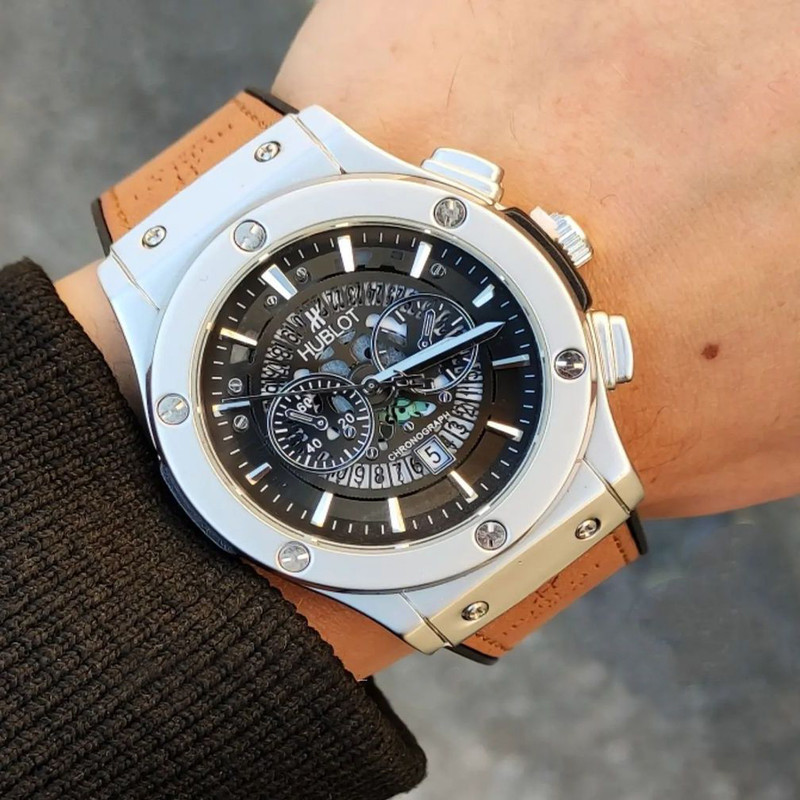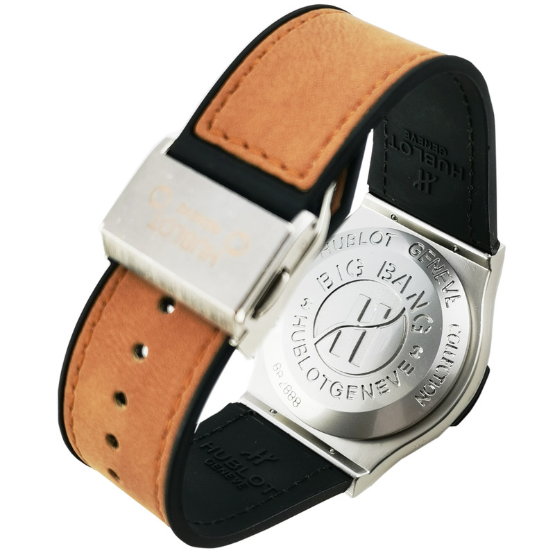 ساعت مدل بیگ بنگ BRدقیقا مشابه نمونه اورجینال ساخته شده آلیاژساخت بسیاربالایی دارد دقیقا مشابه مدل اصلی طراحی شده این ساعت تقریبا مناسب استفاده همه سلیقه ها هست لایه زیر بندساعت ازجنس پیوضدحساسیت تولیدشده که باعث میشه عمربند بیشتربشه و حساسیت هم نداشته باشدبندساعت به راحتی قابل کوچک ویابزرگترشدن هست قطرصفحه ساعت تقریبا 45میلی متر هست که نمایش ساعت به صورت عقربه ای و تاریخ روز شمار به صورت عددی را نشان می دهد