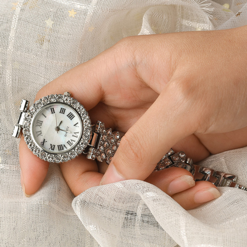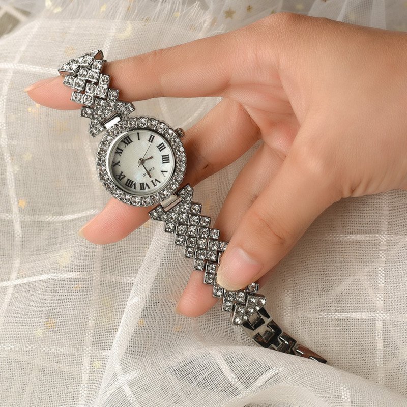 ساعت مچی عقربه ای زنانه مدل قاب دور نگین بند فول نگین کد 1