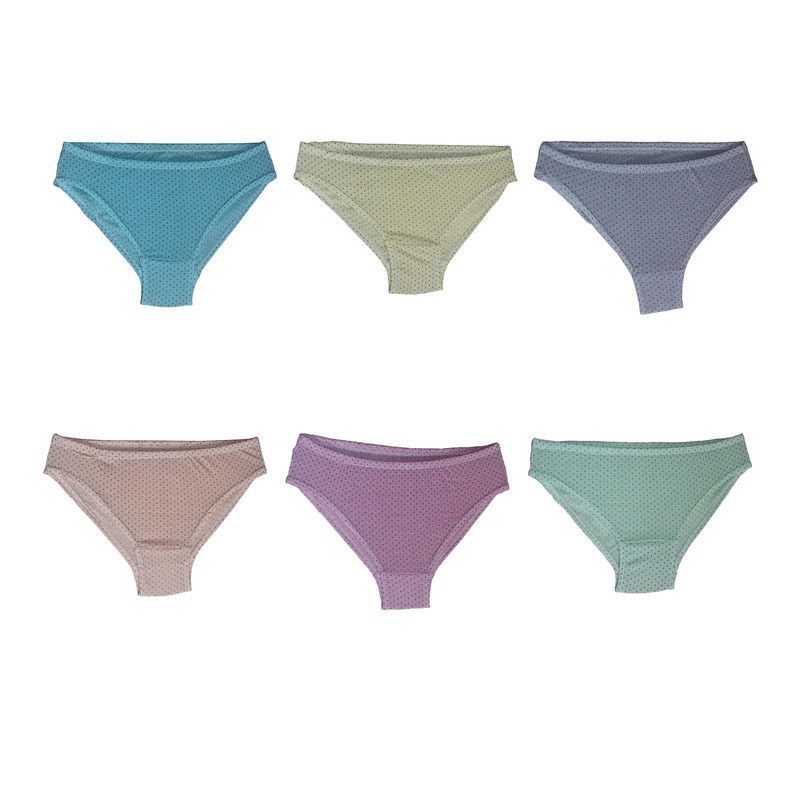 بسته 6 عددی شورت زنانه مدل اسلیپ دارای کمر کشی تولید شده با پارچه لطیف و کیفیت بالا . کش دور پا وکمر بسیار راحت بوده و راحتی را برای مصرف کننده تامین میکند. لباس زیر به علت اینکه در تماس مستقیم با پوست بدن می باشد بایستی هیچگونه حساسیتی برای پوست ایجاد نکند. به همین علت باید در خرید آن دقت کرد .این محصول بدون ایجاد حساسیت سلامت پوست را برای مشتری تضمین می کند. جنس پارچه این شورت 100% پنبه و با کیفیت عالی می باشد .
