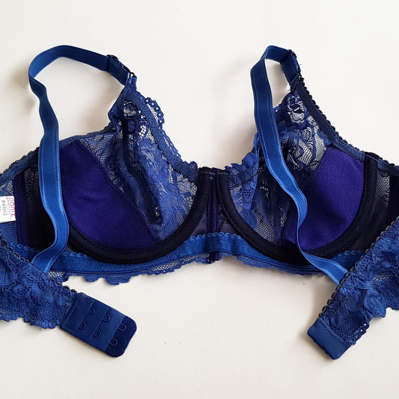 سوتین زنانه پانیذ مدل فنردار گیپوری کد 66336-new رنگ سرمه ای