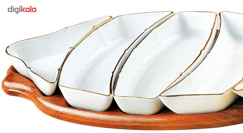 اردوخوری لیمون چینی طرح خط طلا مدل پایه چوبی