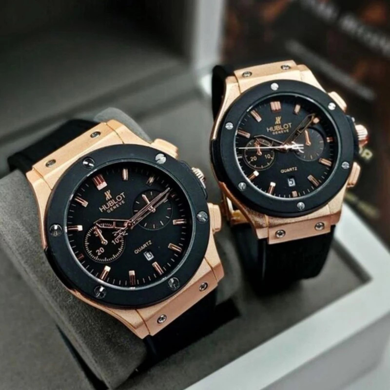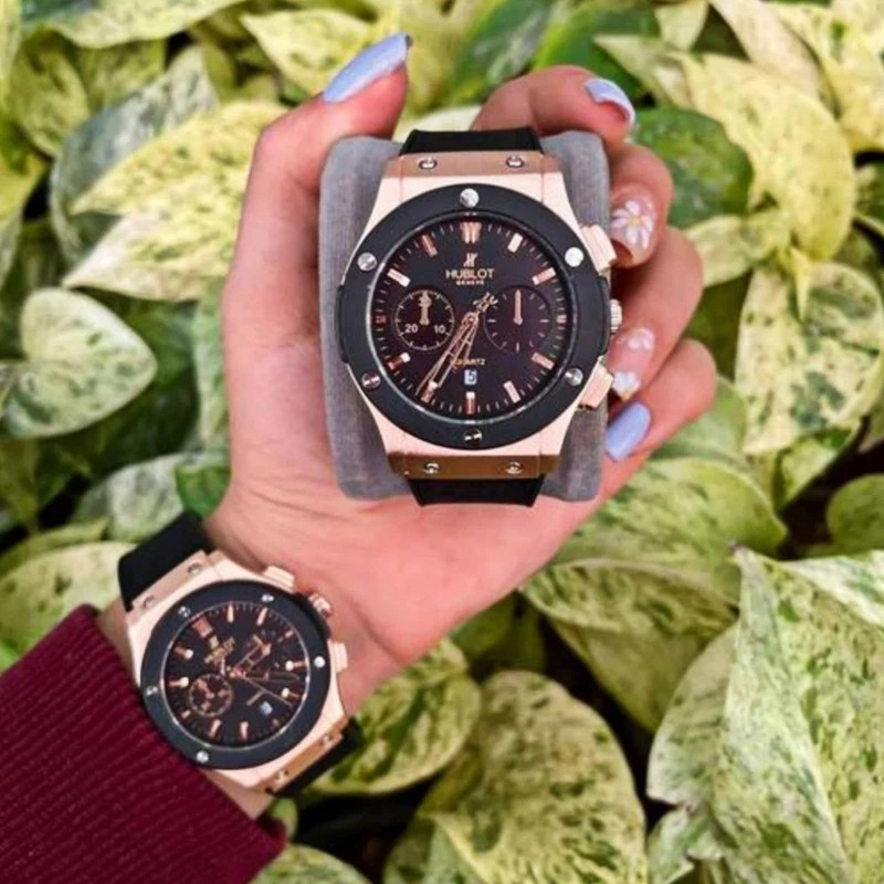 ست ساعت مچی عقربه ای زنانه و مردانه مدل اسکلوتن کلاسیک کد 1