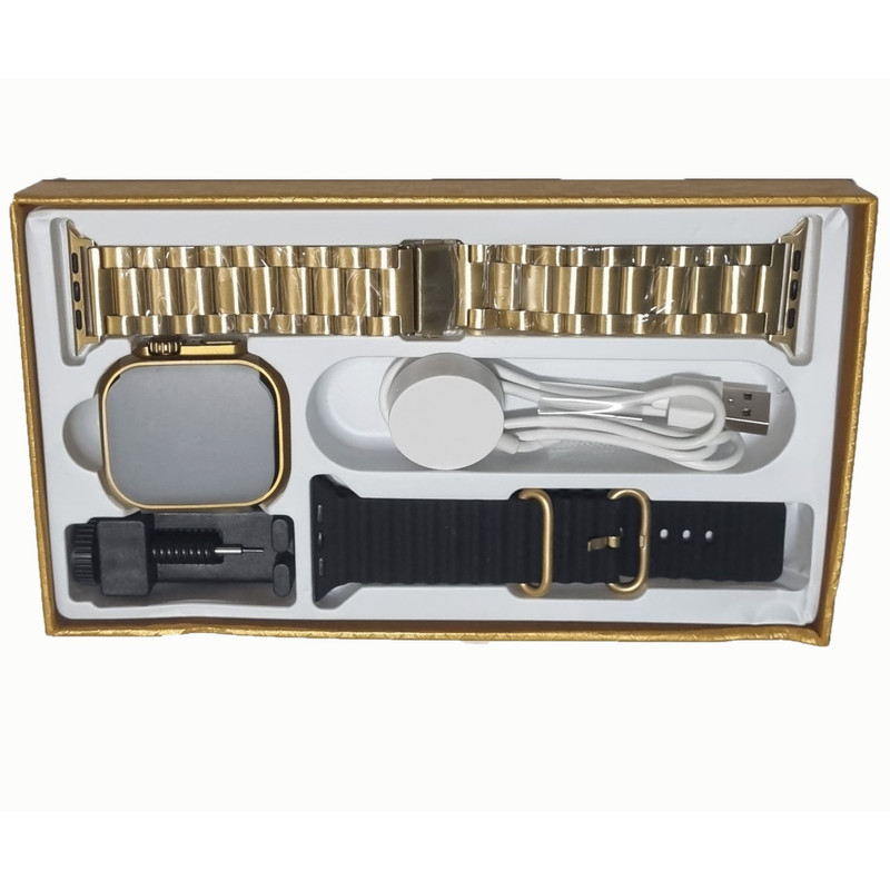 ساعت هوشمند X8 Ultra Max Golden Edition یکی از جدیدترین و بهترین نمونه ساعتهای هوشمند تولید شده از سری ultra 8 در سایز 49 میلی متر تا به امروز است که به تازگی وارد بازارهای جهانی شده است. شبیه ترین مدل به اپل واچ ultra 49mm است.بزرگترین وجه تمایز این مدل را در صفحه نمایش 49 میلی متری بسیار با کیفیت و وضوح تصویر بسیار بالا میتوان یافت که بزرگترین و نزدیکترین صفحه نمایش ساعتهای هوشمند به اپل واچ تا به امروز است.دارای پردازنده بسیار قوی و صفحه نمایش به ابعاد 2.0 inches میباشد .دارای منوی فارسی و شارژر وایرلس و مخصوص است .