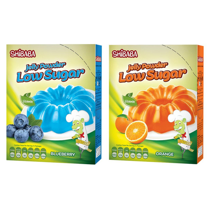 پودر ژله کم شکر بلوبری و پرتقال شیبابا -60 گرم مجموعه 2 عددی